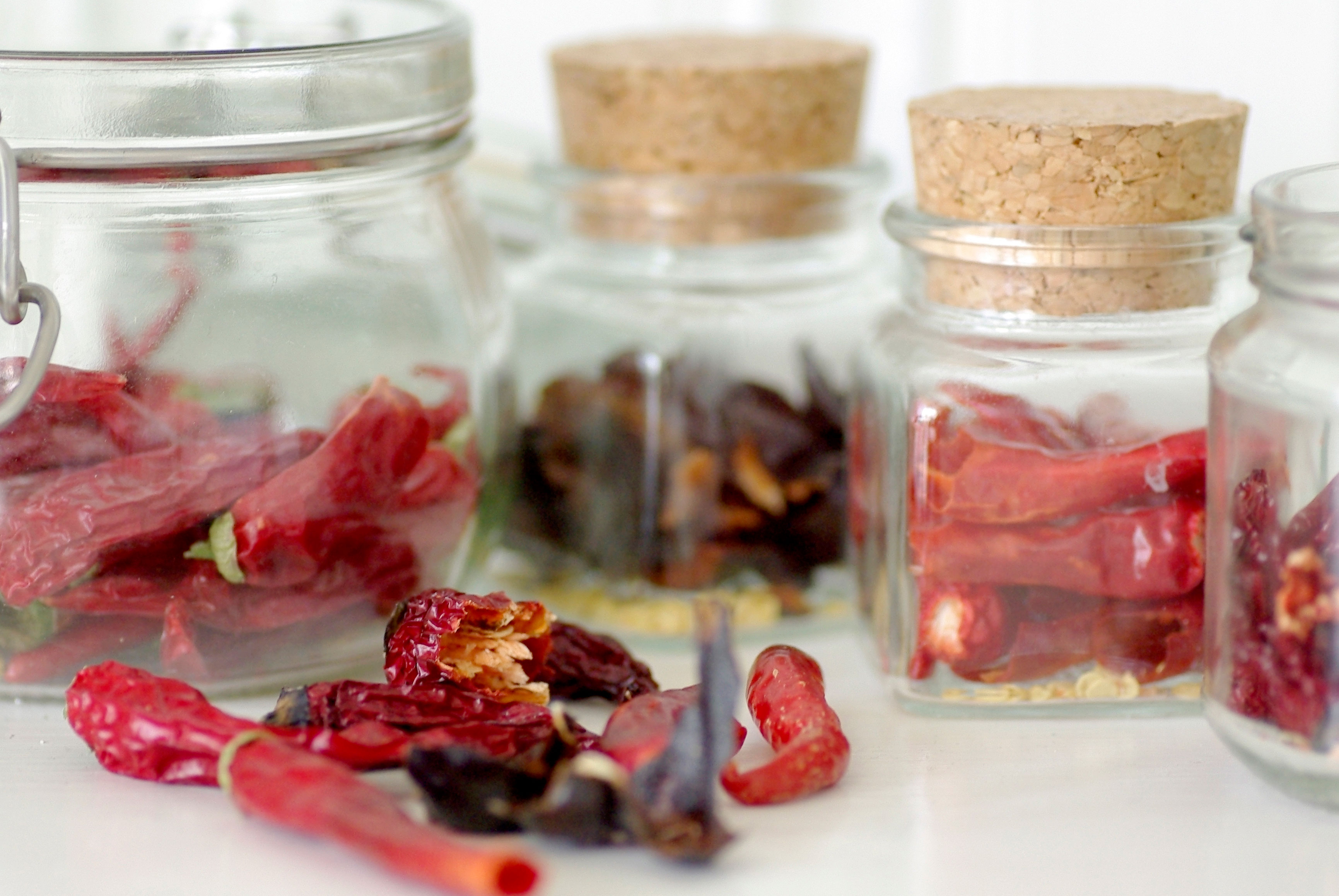 Torka chili och förvara i burkar. Kanske har du och dina odlarvänner odlat olika sorter? Som bäddat för en chiliprovning för att hålla värmen i vinter! Foto: Lovisa Back, Nelson Garden