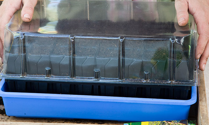 Lägg fröna i blöt i ett dygn. Så dem därefter i en Rootrainer eller i Rootmaster. Foto: Annika Christensen