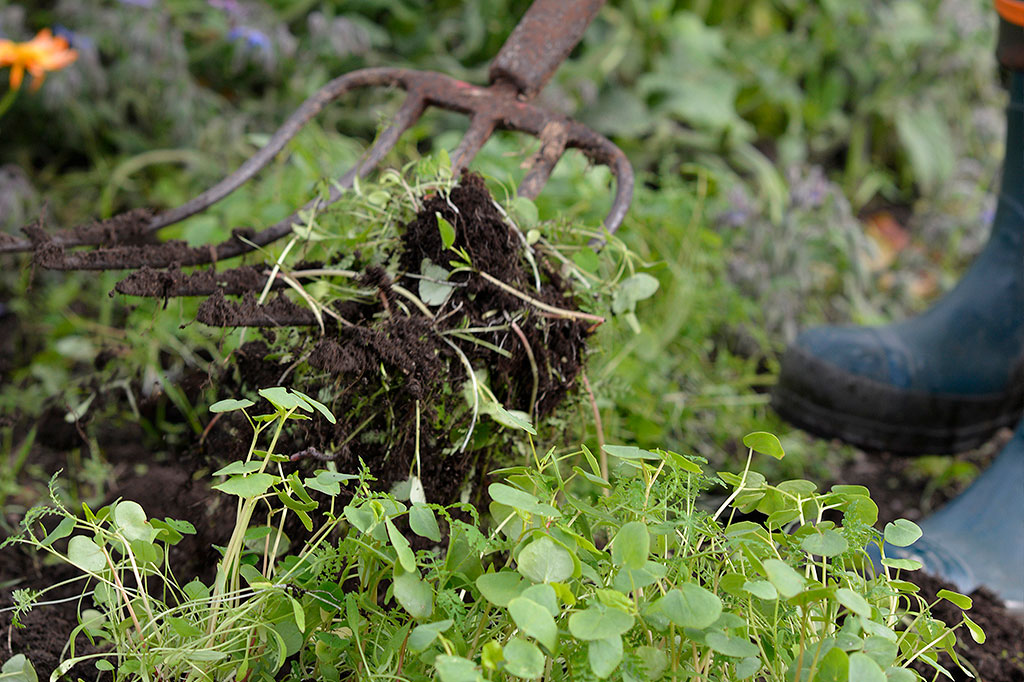 En grep är praktiskt när du vänder ner gröngödslingsväxter i jorden. Foto: Markus Danielsson