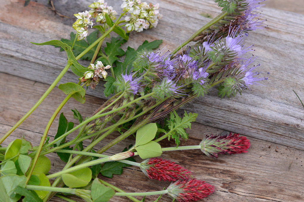 Bovete, honungsfacelia och blodklöver är vackra när de går i blom. Foto: Anna Lindeqvist