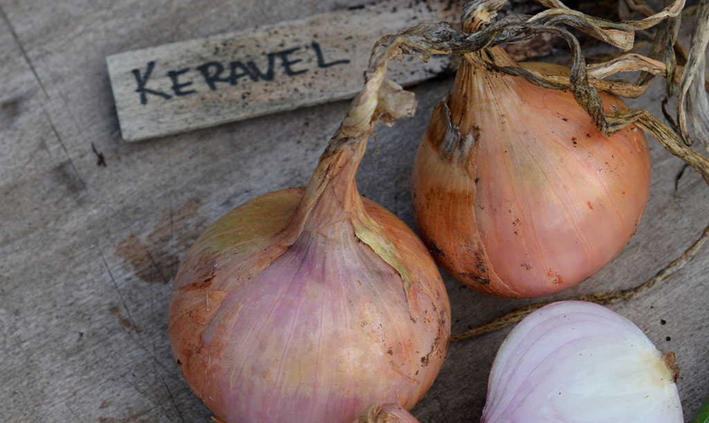 Sorten ’Keravel’ ger ljust rosa lökar med en mild smak. Sättlöken är värmebehandlad och går inte i blom lika lätt. Foto: Nelson Garden