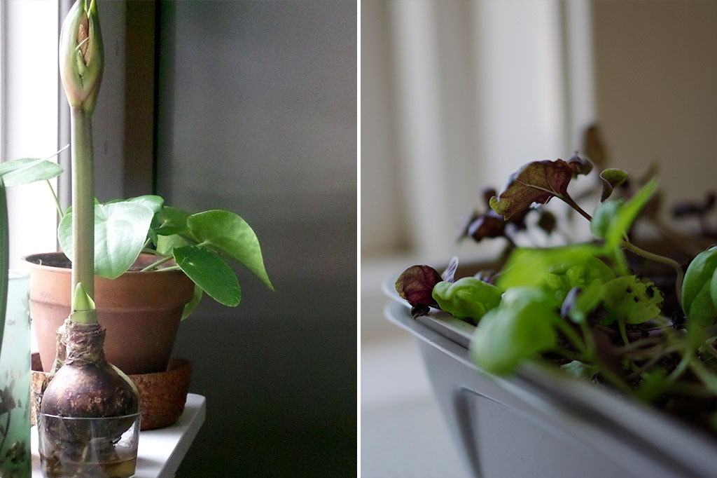 Även om många krukväxter drar ner på tempot under vintern kan de må bra av lite extra omtanke. Det är också under vintern som amaryllisen blommar – oftast till jul om du köpt en ny lök och snarare framåt våren om du har övervintrat en lök från tidigare år.