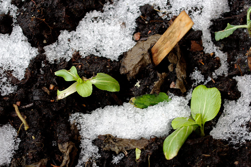 Pak choi är en av många kålsorter som ofta klarar ganska tuff kyla. Även om plantan sett ledsen ut under vintern, kan den vakna till liv igen på vårkanten.