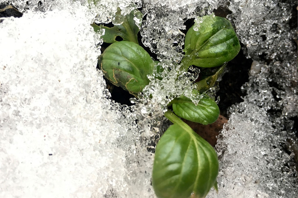 Vintersallat hör till de allra tåligaste av våra bladgrönsaker. De små låga rosetterna håller sig fina under snön och går att skörda om du puttar undan eventuell snö.