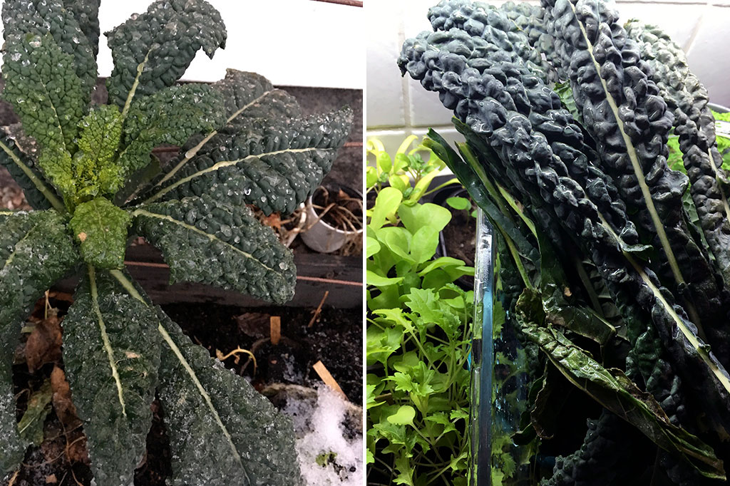 Svartkål ’Nero di Toscana’ och ’Black Magic’ klarar kyla, men inta alltför stora växlingar i temperaturen. För du skördar i minusgrader kan det vara en god idé att låta bladen tina försiktigt. Du kan exempelvis lägga de frusna bladen i kylskåpet.